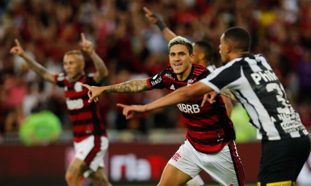 E, de tanto tentar, a equipe da Gávea abriu o placar aos 49 minutos, quando Marinho esticou na direita para Matheuzinho, que foi até a linha de fundo e cruzou rasteiro para Pedro, com muita categoria, finalizar de letra para marcar um golaço.