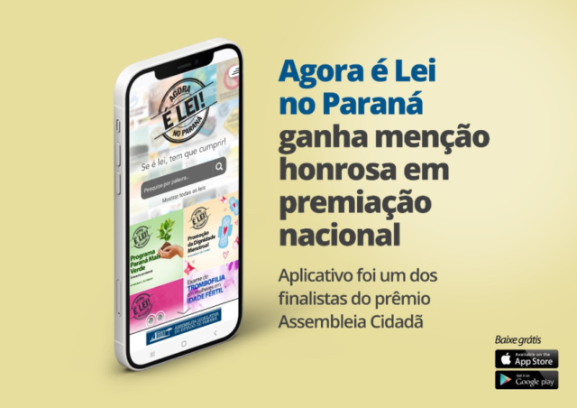 O aplicativo Agora é Lei no Paraná recebeu a menção honrosa do prêmio Assembleia Cidadã, promovido pela União Nacional dos Legisladores e Legislativos Estaduais (UNALE), na categoria Atendimento ao Cidadão. O aplicativo Agora é Lei reúne em uma única plataforma digital leis estaduais que tratam de compra e venda de produtos e da prestação de serviços, auxiliando o consumidor a conhecer a legislação.