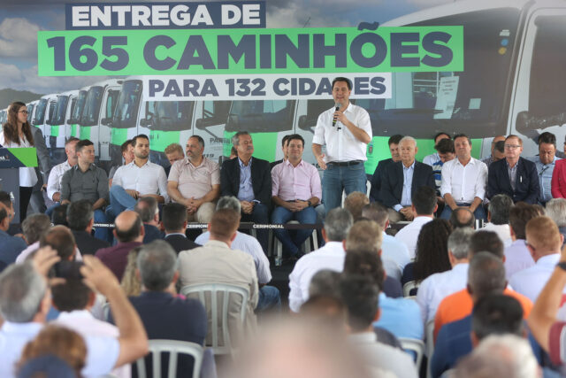 Governador Carlos Massa Ratinho Junior faz a entrega de 165 caminhões para os municipios - Foto Gilson Abreu