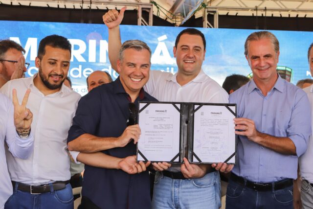 Por fim, Ratinho Junior também assinou o documento para construção da ponte que vai ligar Maringá e Sarandi na região do Jardim Bertioga. O novo corredor logístico será construído sobre o Ribeirão Pinguim, ligando a Avenida Mario José de Faria Ferraz, Zona Sul de Maringá, com a Avenida Nova São Paulo, em Sarandi. O investimento do Governo Estadual será de R$ 5,1 milhões. A Prefeitura entrará com aporte de R$ 456 mil; somando R$ 5,59 milhões na obra.
