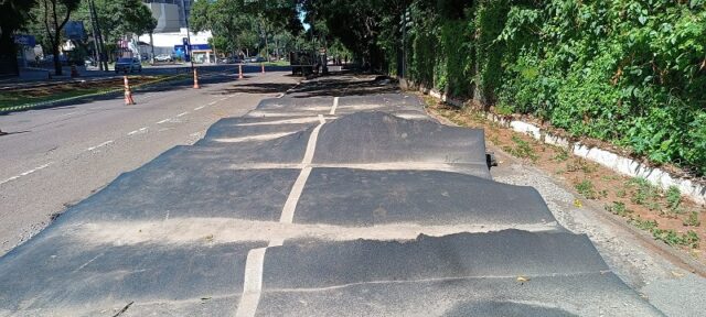 De acordo com o secretário de Comunicação, Lucio Olivio Rosas, uma equipe estava na tarde de ontem, em torno do Parque do Ingá, especificamente na Avenida Laguna, onde a pista emborrachada se desprendeu devido ao grande volume de chuva que a nossa cidade foi acometida neste final de semana.
