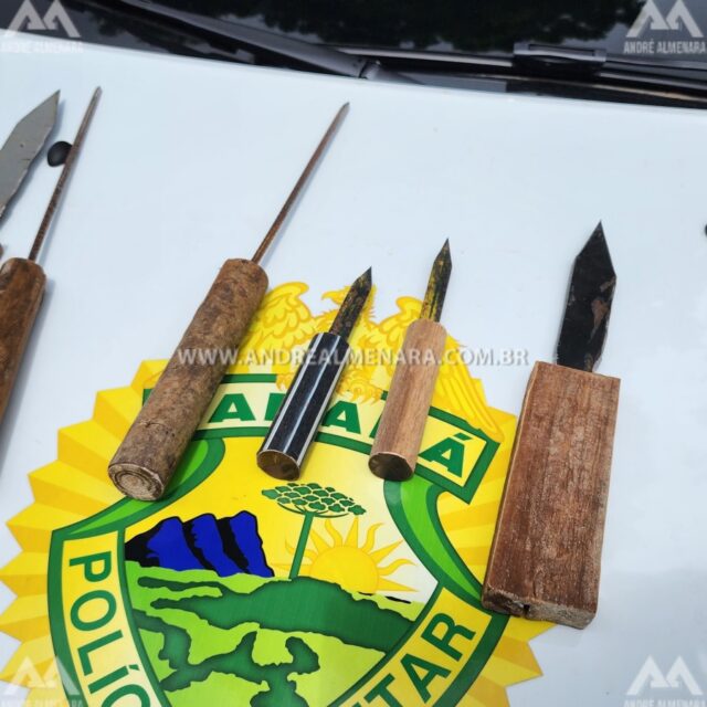 Um homem portando várias facas estava rondando uma escola estadual na cidade de Floresta e fugiu deixando as armas quando percebeu a movimentação da vizinhança.