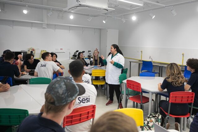 Com ensino bilíngue e espaços de aprendizagem baseados na abordagem STEAM – sigla em inglês para as disciplinas de Ciências, Tecnologia, Engenharia, Artes e Matemática – a Escola Sesi de Referência Internacional conta com espaços estruturados com mobiliário, equipamentos e materiais didáticos específicos para cada área do conhecimento. Dessa forma, as salas de aula se tornam verdadeiros laboratórios possibilitando a imersão dos alunos no conteúdo.