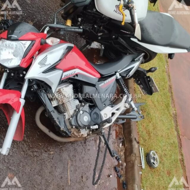 Um misto de audácia, perícia, abuso e sensação de impunidade. Com esses ingredientes, dois ladrões protagonizaram uma cena digna de filme policial no centro de Maringá na manhã de domingo. Um motociclista estacionou sua CG Titan na Avenida Horácio Racanello entre várias outras motocicletas e saiu para o trabalho ali nas proximidades. Quando retornou encontrou o seu veículo sem as duas rodas. Furtos de motos na região central de Maringá tem sido frequentes, mas essa de retirar as rodas surpreendeu até a própria Polícia Civil, que investiga a atuação de uma quadrilha que há tempo vem agindo na cidade.