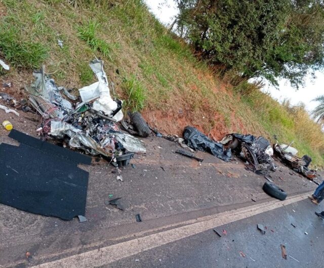 A violência da batida foi tanta que um dos veículos se partiu ao meio, matando seu condutor na hora. A tríplice colisão ocorreu ontem pela manhã na BR-376, próximo ao trevo de acesso a Nova Londrina, no Noroeste do Paraná. O motorista morto foi identificado comoWellington Araki Morimatsu, de 54 anos, dentista do SUS em Nova Londrina, que estava indo para a cidade de Paranavaí ao volante do Corola que ficou espatifado na pista.