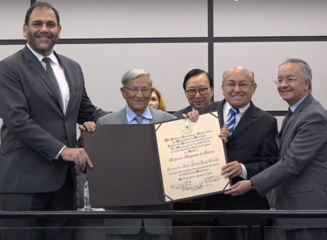 Agora acabo de ganhar um presente muito bonito. Por proposta dos queridos amigos vereadores Mário Verri e Dr. Manoel Álvares Sobrinho, o Legislativo e o Executivo do município me honraram com a “Comenda Dom Jaime Luiz Coelho”, que recebi com humildade, máximo respeito, e comovidamente peço licença para repartir com todos os/as colegas da primeira geração de jornalistas e escritores deste nosso melhor lugar do mundo. Muito obrigado, Maringá.A. A. de Assis