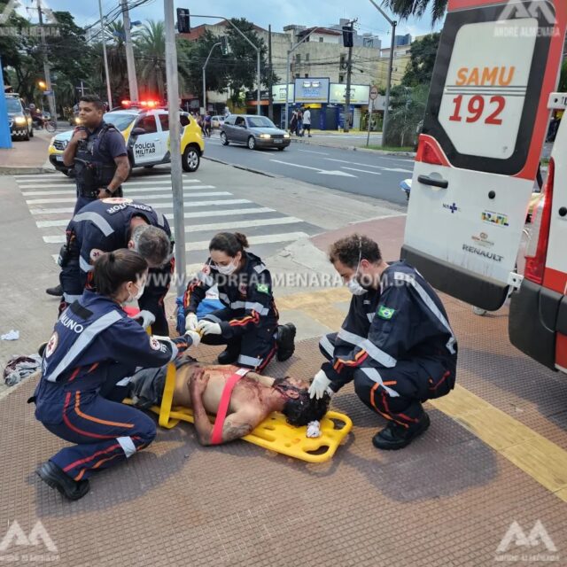 Claudinei de Souza, de 33 anos, foi atacado na Praça Raposo Tavares no início da noite de domingo por um menor de 14 anos. Apreendido pela Polícia Militar, o adolescente disse que tentou matar Claudinei porque o mesmo lhe teria roubado um celular. Mas de acordo com levantamento da PM, o menor é suspeito de praticar vários roubos na área central de Maringá.
