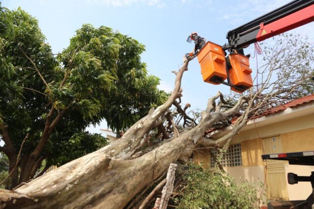 A força-tarefa da Prefeitura de Maringá está nas ruas desde o início da manhã desta sexta-feira, 13, para limpeza e desobstrução de vias, além de retirada de árvores. Mais de 400 servidores e equipes da Defesa Civil Municipal, Corpo de Bombeiros, Copel e voluntários do Tiro de Guerra de Maringá trabalham no atendimento das ocorrências.