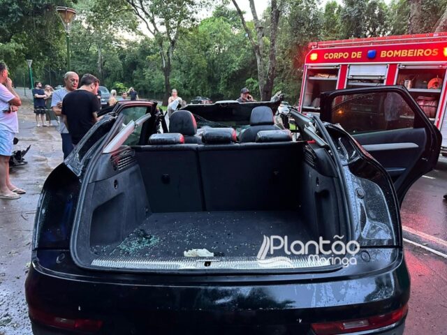 Um carro de luxo ficou completamente destruído depois de bater contra uma árvore, em Maringá. Segundo o Corpo de Bombeiros, o acidente foi registrado no final da tarde de domingo. O veículo modelo Audi Q3 estava trafegando pela Avenida Juscelino Kubitscheck, quando o motorista tentou desviar de um galho que caiu com o temporal e bateu contra uma árvore.