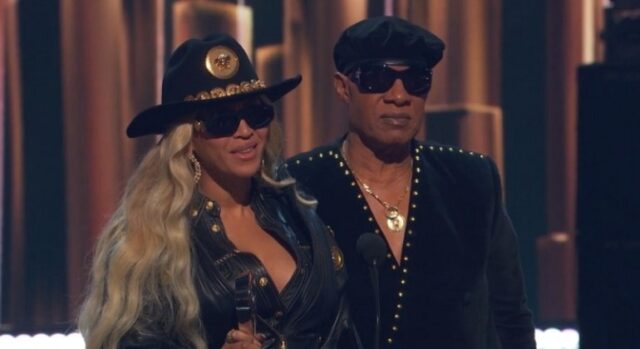 Bey recebeu o troféu das mãos de ninguém menos que Stevie Wonder que falou sobre a cantora, a quem chamou de uma verdadeira visionária: Após lembrar parte dos grandes feitos da artista e citar a importância dos álbuns “Beyoncé”, “Lemonade” e “Renaissance” para o mundo da música, Wonder disse que agora, ela se apresentou como uma “genuína sensação da música country com “Cowboy Carter, sua mais recente obra-prima”, um trabalho que poderá se tornar, nas palavraas dele, o disco mais comentado deste século.