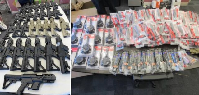 Os policiais apreenderam grande quantidade de acessórios de armas pesadas ao cumprir mandados de busca e apreensão em Maringá.