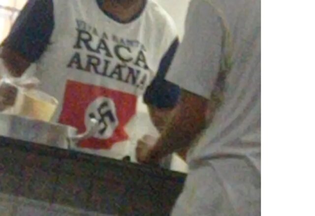 Na camiseta dela o desenho do símbolo máximo do nazismo e a frase “Viva a Santa Raça Ariana”. Isso é crime no Brasil, na Alemanha e em qualquer país democrático do Planeta. A funcionária de uma escola estadual de Maringá chegou para trabalhar na manhã de ontem sem se dar conta da reação que a camiseta que vestia fosse provocar na comunidade escolar. Assim que ela chegou, alunos fotografaram a estampa da camiseta e comunicaram os professores. Chamada na diretoria, a servidora disse que não sabia que aquilo era tão grave. Na hora, providenciaram outra camiseta e ela trocou, demonstrando um misto de decepção e temor.
