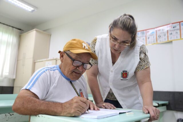 A Educação de Jovens e Adultos reúne alunos com idades entre 15 e 90 anos, com foco na alfabetização e na garantia da conclusão dos estudos para as pessoas que não fizeram a primeira etapa do ensino fundamental (1º ao 5º ano). Além da nova sede da EJA na região central, a Secretaria de Educação oferece turmas em 12 escolas municipais.