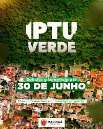 O prazo para solicitar o IPTU Verde para o ano que vem em Maringá termina no dia 30 deste mês. Dessa forma, o IPTU Verde da Prefeitura de Maringá garante desconto entre 3% e 20% no Imposto Predial e Territorial Urbano (IPTU) para proprietários de imóveis residenciais e terrenos que investem em ações de proteção, preservação ou recuperação do meio ambiente. O benefício deve ser pedido sempre no ano anterior. O pedido é realizado exclusivamente pela internet, por meio do Sistema Eletrônico de Informações (SEI).
