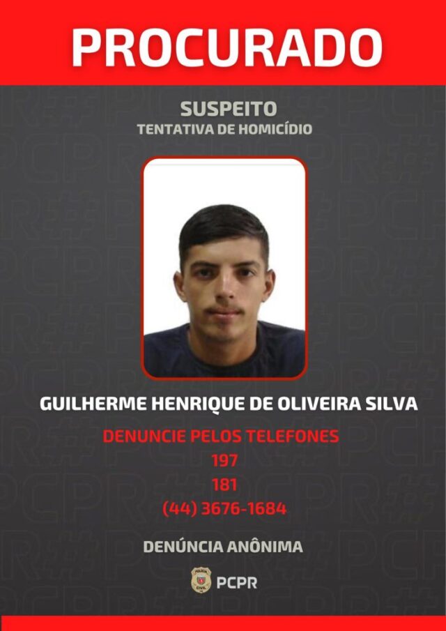 O suspeito procurado é Guilherme Henrique de Oliveira Silva, cuja foto foi divulgada ontem pela Polícia Civil do Paraná. Ele e os outros já presos fazem parte de uma organização criminosa, que tinha como base a cidade de Mariluz. Qualquer informação sobre Guilherme, a Polícia Civil pede que seja repassada através dos telefones (44) 3676-2362 e 3621-2650.