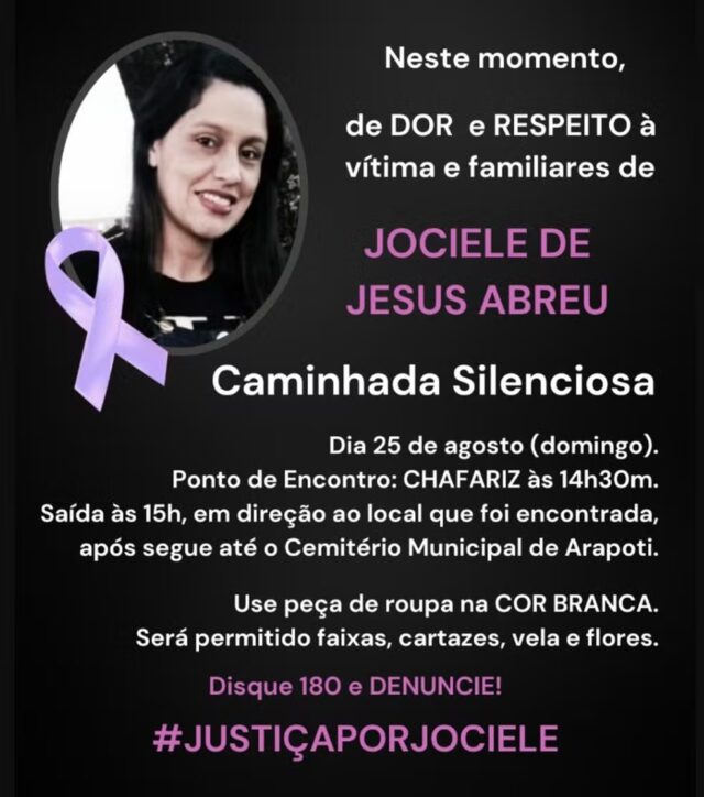 Juciele de Jesus Abreu , de 31 anos fui surpreendida na rua por um desconhecido que a pegou pelo braço e mesmo ela tentando reagir, foi arrastada até o matagal mais próximo. Ali ela foi agredida, estuprada e morta por estrangulamento. O crime brutal aconteceu em Arapoti, região dos Campos Gerais . A cena do homem arrastando a vítima foi registrada por uma câmera de segurança, que mostrou ele saindo do matagal meia hora depois de entrar, puxando a vítima pelo braço.