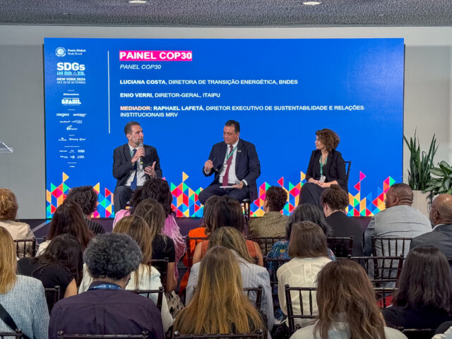 O diretor-geral brasileiro da Itaipu, Enio Verri, participou nessa quinta-feira (19), na ONU, em Nova Iorque (EUA), do SDGs in Brazil (“Objetivos de Desenvolvimento Sustentável no Brasil”, em tradução livre), evento do Pacto Global que visa incentivar empresas e organizações a adotarem políticas sustentáveis e socialmente responsáveis. No encontro, ele destacou os investimentos da Itaipu na COP 30, em Belém (PA), e apresentou as práticas sustentáveis da Binacional para apoiar a agenda de descarbonização global.