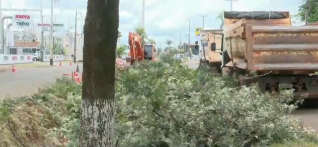 Por causa da obra, uma das faixas da avenida Morangueira está interditada para o tráfego de veículos, em frente da Associação dos Funcionários Públicos.