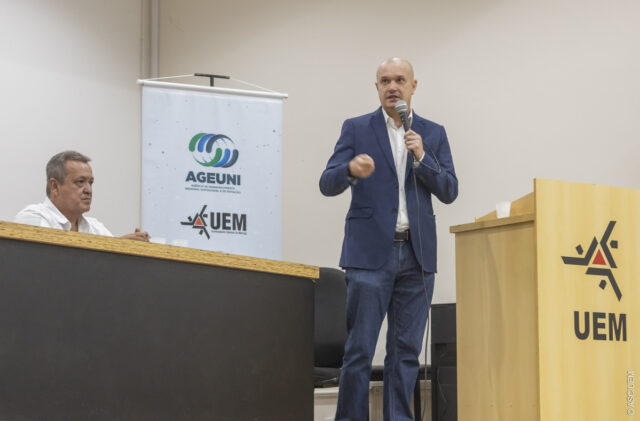 No evento, o diretor de Ciência e Tecnologia da Secretaria da Ciência, Tecnologia e Ensino Superior (Seti) do Paraná, Marcos Aurelio Pelegrina, também parabenizou os projetos de pesquisa da UEM aprovados no edital e apresentou dois novos, que serão lançados pela Ageuni.
