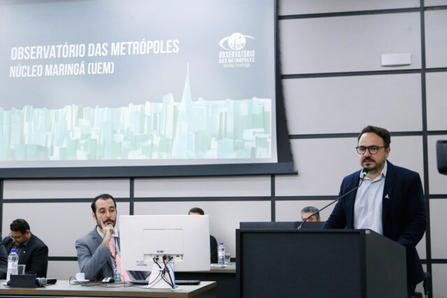 Durante sua fala, Antônio Rafael destacou alguns dos principais estudos conduzidos pelo Núcleo Maringá, como a análise da população em situação de rua na cidade, a elaboração de um plano local de habitação de interesse social e um diagnóstico sobre o desenvolvimento cultural de Maringá, com mapeamento de agentes culturais.