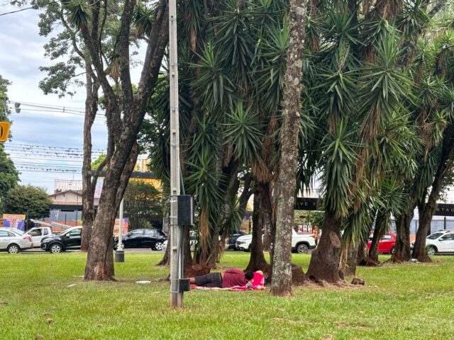 A presença de moradores de rua na Praça Ministro Antônio Oliveira Salazar, em frente à Câmara Municipal de Maringá, tem gerado preocupação entre pedestres e comerciantes da região. Na última quarta-feira, cerca de três moradores em situação de vulnerabilidade foram vistos no local, incluindo um indivíduo que, após realizar suas necessidades básicas, dormiu em uma árvore da praça.
