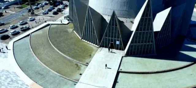 Um dos cartões-postais mais conhecidos de Maringá, a Catedral Metropolitana exibiu manchas escuras no espelho d’água que a circunda, na manhã da quinta-feira. As manchas submersas indicavam acúmulo de sujeira e poluição, comprometendo a estética do local.