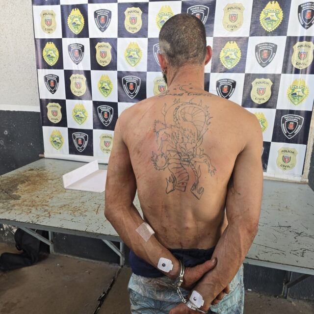 A Guarda Civil Municipal de Maringá prendeu ontem de manhã um homem que estava em casa onde acabara de estacionar um Fiat Uno que tinha comunicado de furto. Adriano Aparecido de Oliveira, de 38 anos foi tentou fugir, chegou a pular o muro da casa vizinha e parou quando encostou na cerca elétrica de uma residência e caiu com o choque. Foi preso mas antes de ir para a cadeia teve que ser levado para atendimento médico na UPA Zona norte. O carro que estava em posse do suspeito tinha sido furtado há pouco tempo na Vila Esperança. Ele disse aos policiais ter comprado o veículo, acabando por admitir que sabia que o Uno era furtado.