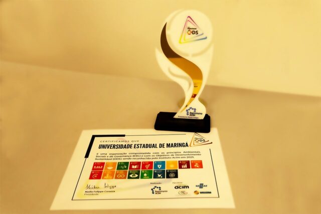 A UEM também recebeu, no último ano, pelo quarto ano consecutivo o Selo Ouro Impactacim, concedido pelo Instituto ACIM, da Associação Comercial e Industrial de Maringá, que certifica instituições com práticas alinhadas aos pilares ESG (Ambiental, Social e Governança) e aos Objetivos de Desenvolvimento Sustentável da ONU. Nesta edição, a UEM apresentou 15 projetos, todos com desempenho acima de 60%, a maioria superando 90%.