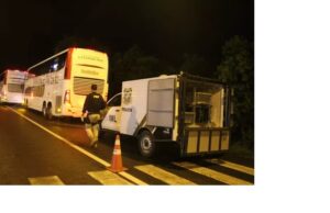 Os criminosos se passaram por agentes da Receita Federal e de armas em pinho pararam três ônibus na PR-444, entre Mandaguari e Arapongas.
