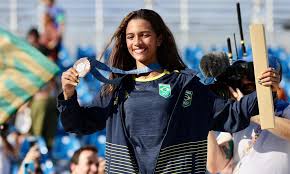 A atleta brasileira Rayssa Leal, 16 anos, conquistou neste domingo (28) a medalha de bronze no skate street feminino.