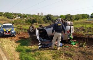 Motorista capota carro ao tentar fugir de falsos policiais na estrada