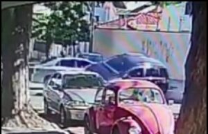 Uma câmera de segurança instalada nas proximidades da Churrascaria Pavan, mostrou o momento em que a caminhonete dirigida por um bandido em fuga, capotou,...
