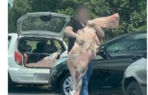 Imagens que circulam pela internet mostram pessoas “abraçadas” a pedaços de carne, que se esparramaram pelo asfalto após o acidente com um caminhão frigorífico...