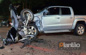 Carro bate atrás de moto e deixa bombeiro gravemente ferido