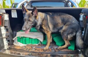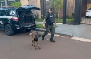 O flagrante foi dado com a ajuda de “Kris”, um dos cães farejadores que auxilia a Polícia Civil no combate ao tráfico na região...