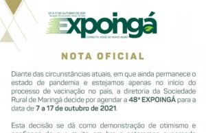 A Sociedade Rural de Maringá, por meio de uma nota, divulgou que a 48ª Expoingá foi adiada para o período de cinco a 15...