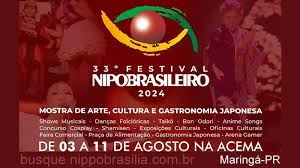 A 33ª edição do Festival Nipo-Brasileiro de Maringá será entre os dias 3 e 11 de agosto, na Associação Cultural e Esportiva de Maringá...