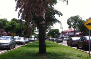 Carros estacionam no meio do canteiro da Avenida das Palmeiras