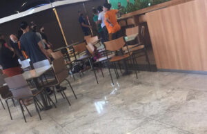 Várias pessoas almoçavam na praça de alimentação do Shopping Catuaí de Londrina quando um homem de camisa branca e máscara se aproximou de um...