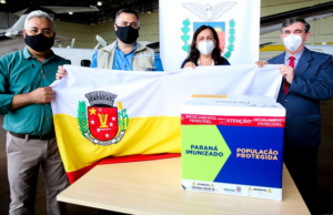 Novo lote de vacina para a campanha contra o coronavírus chegou no Aeroporto de Maringá neste domingo, 24, pelo secretário de Saúde do Paraná,...