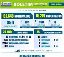 A Prefeitura de Maringá registrou 350 casos de coronavírus e 2 óbitos no boletim desta terça, 12. Perfil das vítimas:- Mulher, 69 anos, sintomática...