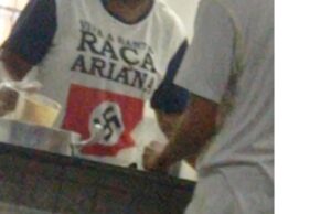 Na camiseta dela o desenho do símbolo máximo do nazismo e a frase “Viva a Santa Raça Ariana”. Isso é crime no Brasil, na...