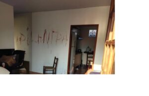 O marido foi preso em flagrante após agredir com extrema violência a esposa e escrever palavras ofensivas na parede , usando o sangue que...