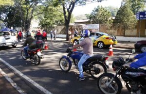 Agentes de trânsito orientam condutores de veículos de duas rodas