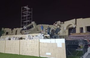 Imagem mostra o desespero de trabalhadores que foram surpreendidos pela tempestade de sexta-feira quando desciam do prédio em construção pelo elevador de serviço, em...