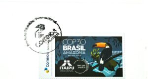 Correios lançam selos comemorativos no estande da Itaipu na COP30