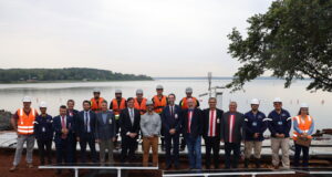 Diretores de Itaipu visitam construção de usina solar flutuante