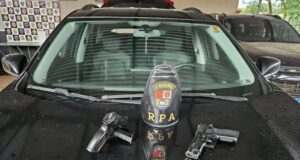 Polícia prende suspeitos com carro roubado e simulacros de pistola