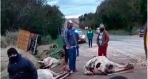 Caminhão atropela e mata 16 bois na BR-272