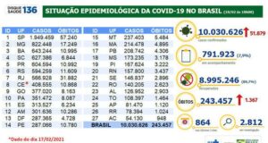 Brasil já registrou mais de 10 milhões de casos de covid-19